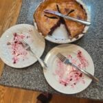 I’m talking about a forkful of pie, loaded with flaky crust and purple, tangy-sweet berries that burst in your mouth and leave your tongue a Harry Potter-shade of blue.