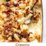A gratin is simply anything baked with a golden, creamy top, and potatoes are the version most of us know best (my cauliflower gratin is another example). Somewhere along the way, the phrase “au gratin” slipped into American kitchens and cookbooks and stuck.
