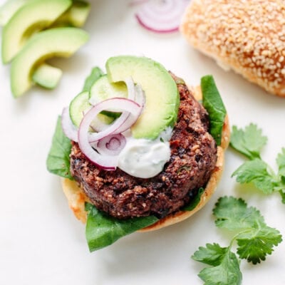 These black bean burgers have been tested to perfection! They have a satisfying meaty texture and are seasoned with plenty of spice and seasonings. Plus, they don't fall apart or need to chill before cooking. Slather them with a quick lime mayo and all your favorite toppings.