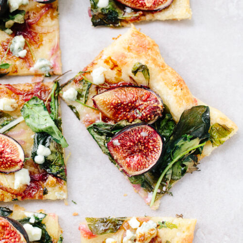 A wonderfully flaky and super-savory fig tart made with puff pastry is a fast, elegant appetizer. This beauty is topped with fresh figs, blue cheese, sweet balsamic onions and baby greens. This is a simple, no-fuss appetizer that's perfect for entertaining or snacking.